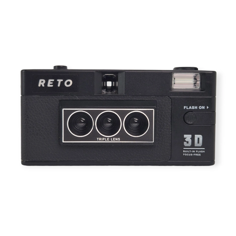 RETO 3D to odważny, młodzieżowy aparat analogowy na film 35 mm, który zaskakuje potrójnym obiektywem i łatwością użycia. Łączy w sobie retro vibe z kreatywną zabawą bez zbędnych ustawień!