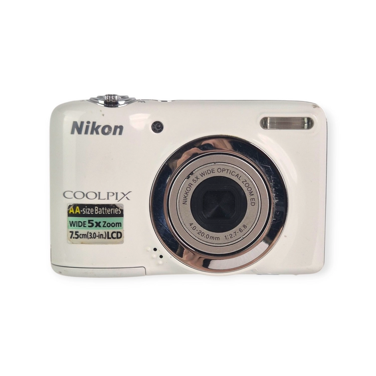 Nikon COOLPIX L25 to poręczny aparat cyfrowy z 10 MP matrycą i 5× optycznym zoomem. Zasilany bateriami AA – łatwo dostępne w każdym miejscu. Dzięki dużemu ekranowi 3″ i automatycznym trybom, idealny dla początkujących i na wyjazdy.